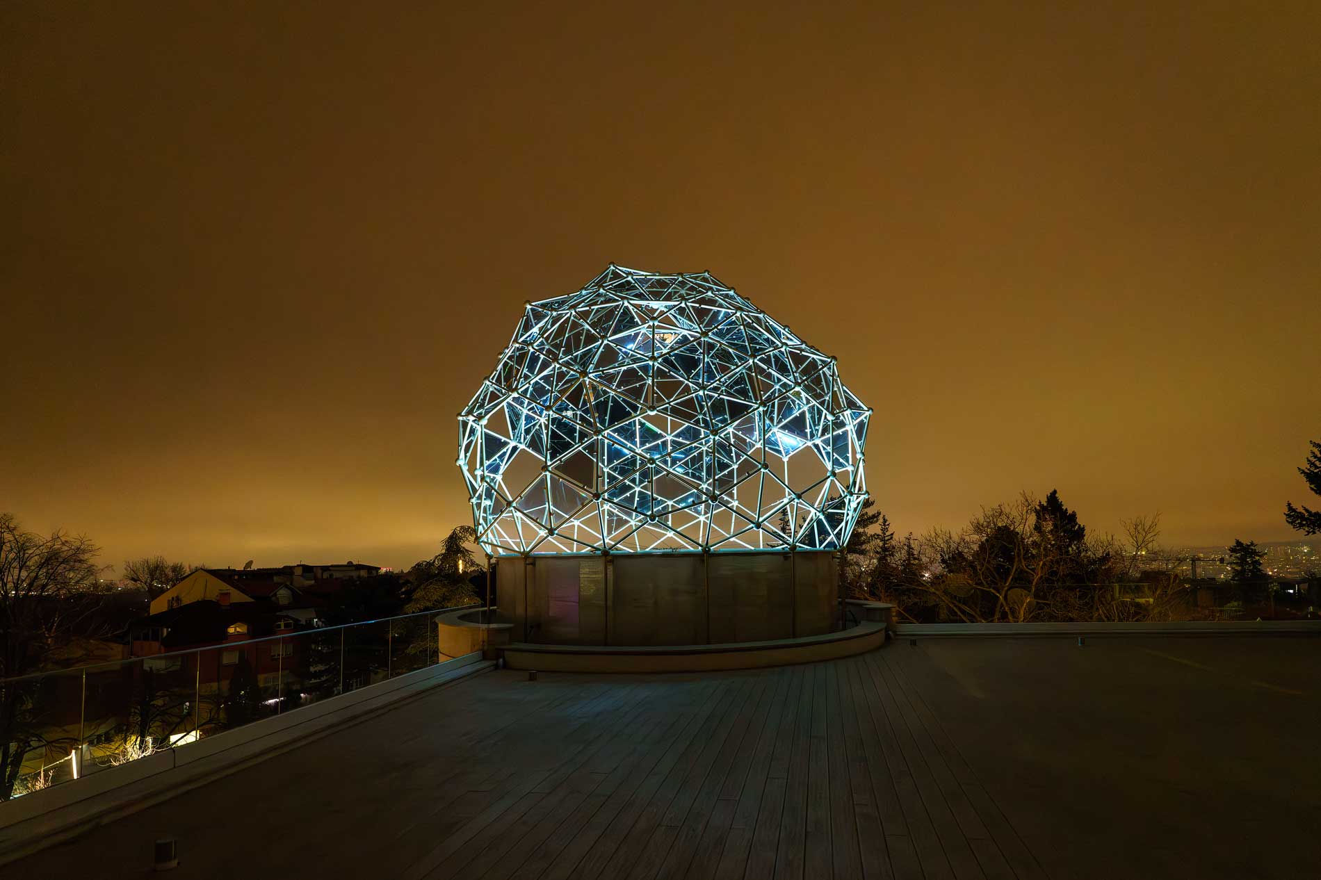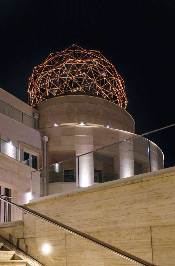 This dome was honored with a special award for conceptual design at the ArtZept competition. Its inspiration stems from the fullerene molecule—a key element featured in Zepter Hyperlight optics eyewear products.