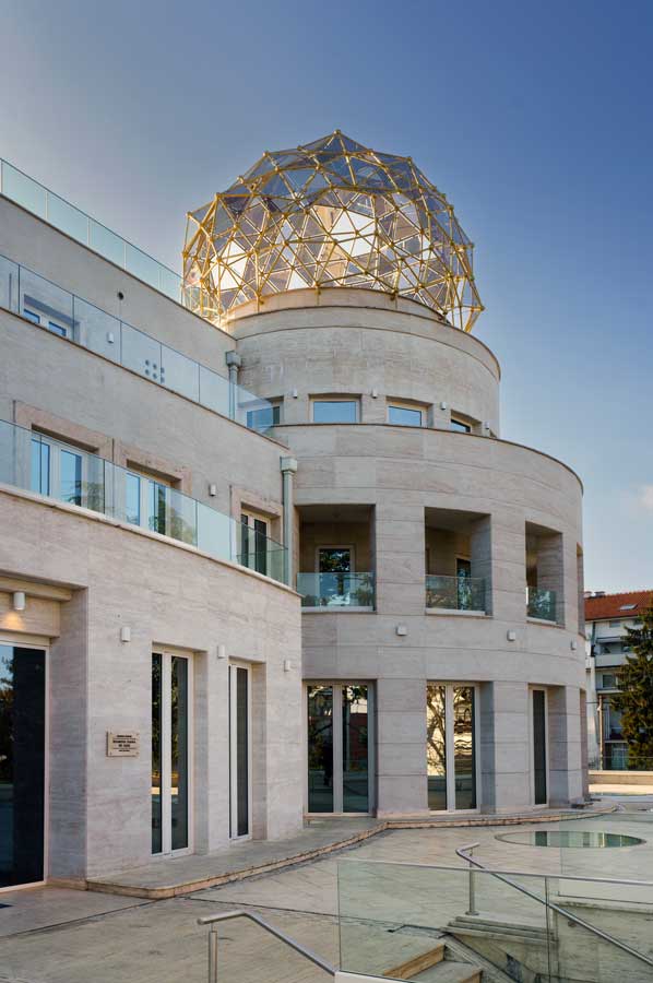 The dome crowning the circular rotunda at the prominent street-facing corner of the Madlena Art Palace is the creation of architect Zoran Aleksić, with collaborator designer Strahinja Pakaški. The lighting design was crafted by Miroslav Mirković.